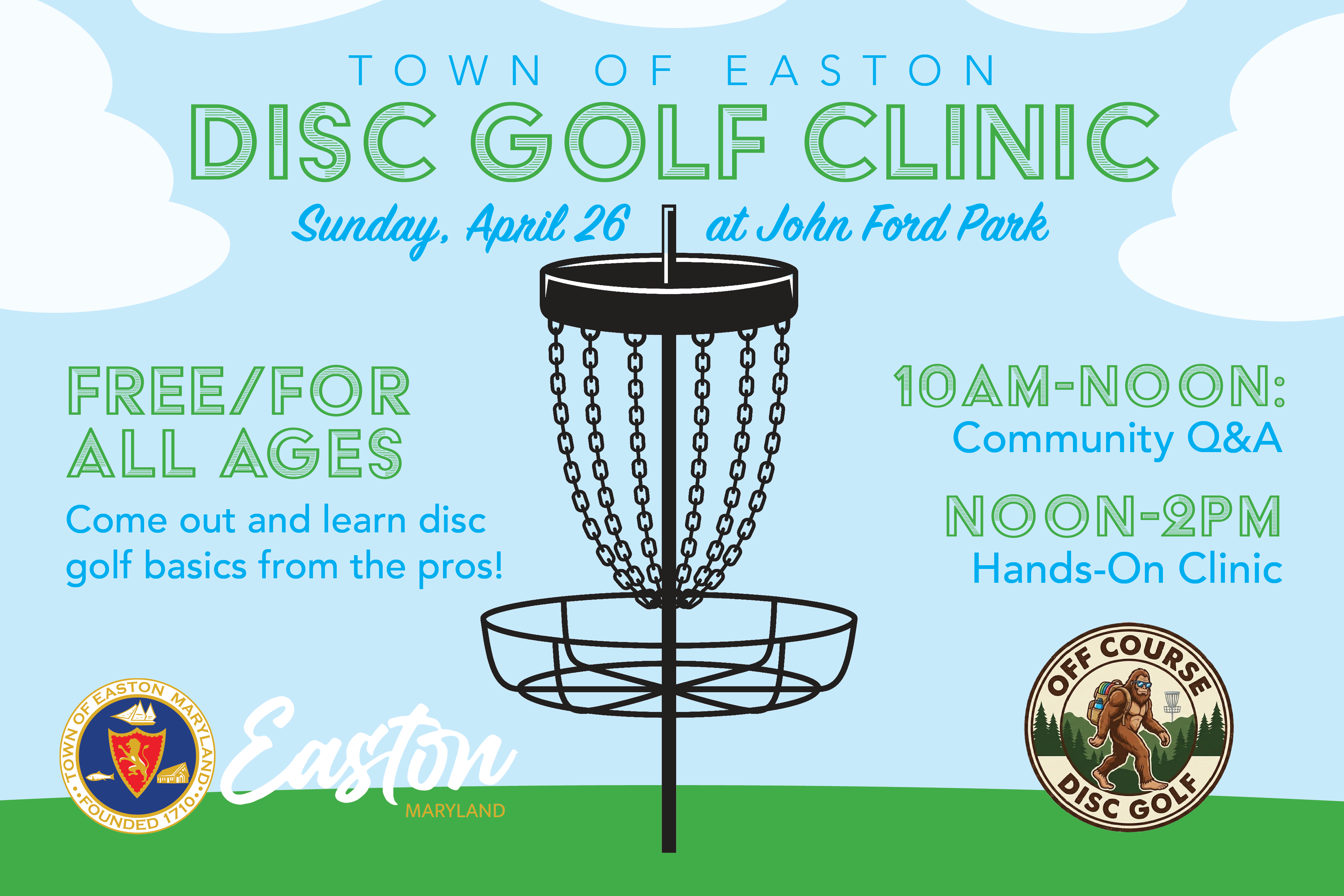 The event will be held at John Ford Park on Sunday, April 26, and will help to introduce beginners and newcomers to the exciting sport of Disc Golf. The clinic is broken into two sections, with a Community Q&A running from 10am to noon, and then a hands-on clinic running from noon to 2pm.